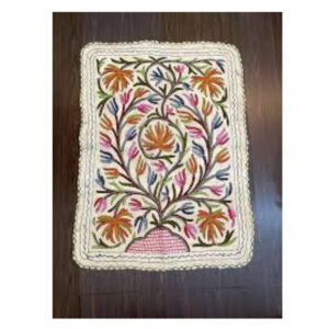 Crewel work combines bold wool threads with fine fabrics, creating striking designs that last for years. Known for its raised, textured look and nature-inspired motifs, it enhances home décor and fashion alike. Each handmade piece reflects Kashmiri artistry, adding elegance, warmth, and heritage to everyday living.